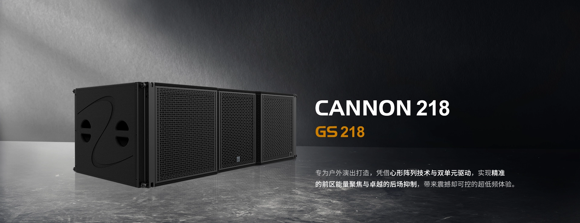 GS218 内置2个与意大利B&C联合开发的18英寸防水单元,每个配备4英寸音圈,单箱音乐功率高达5600瓦,低频爆发力强劲,完美适配户外大空间扩声需求;