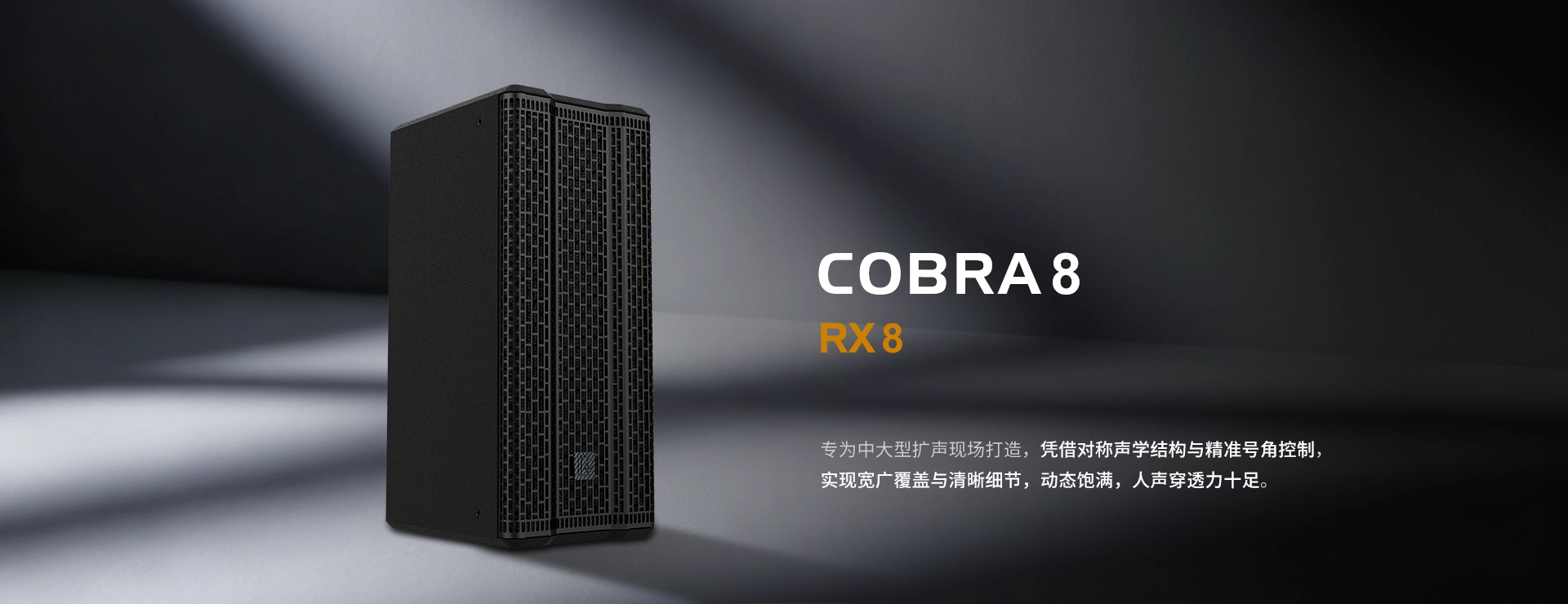 RX8 采用2个8英寸低频驱动器,搭配1个3英寸压缩高音单元(搭载于可旋转CD号角,指向灵活可调)。优化的驱动器设计显著提升灵敏度,结合低音反射式通风结构,有效扩展低频响应,同时兼顾语音清晰度与音乐动态表现。